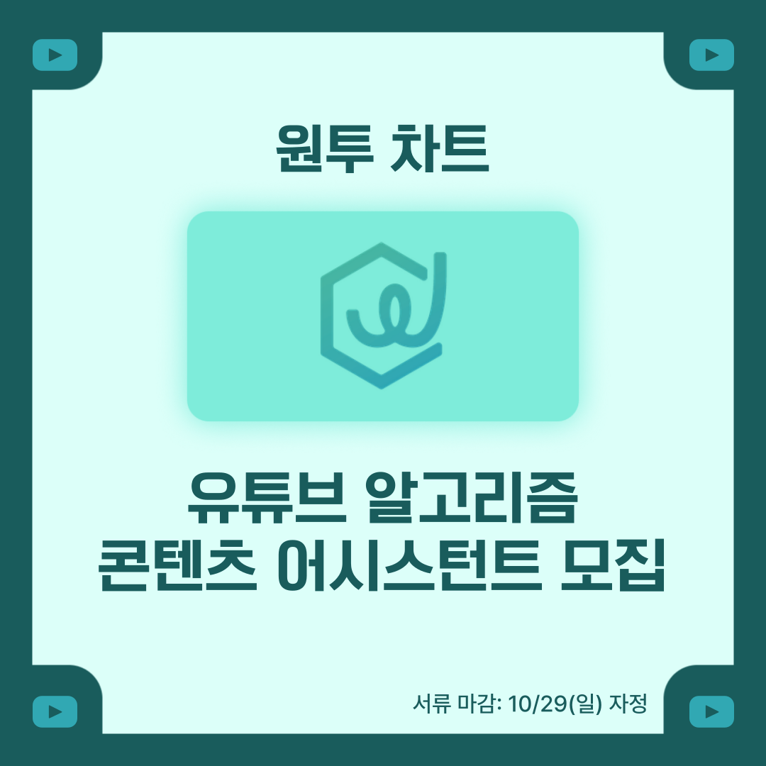 유튜브 알고리즘 문제를 해결하고 있는 “원투"에서 콘텐츠 어시스턴트를 모집합니다🎉