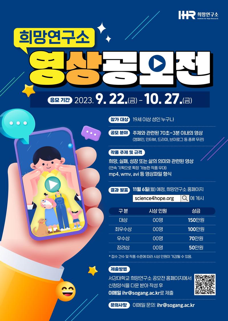 - 응모된 작품에 대한 저작권은 응모자에 있으며, 서강대학교 희망연구소에서는 수상작에 한하여 저작재산권 이용 동의를 통해 온라인 및 오프라인 홍보를 위한 복제·배포· 전시 등에 무상으로 활용할 수 있음