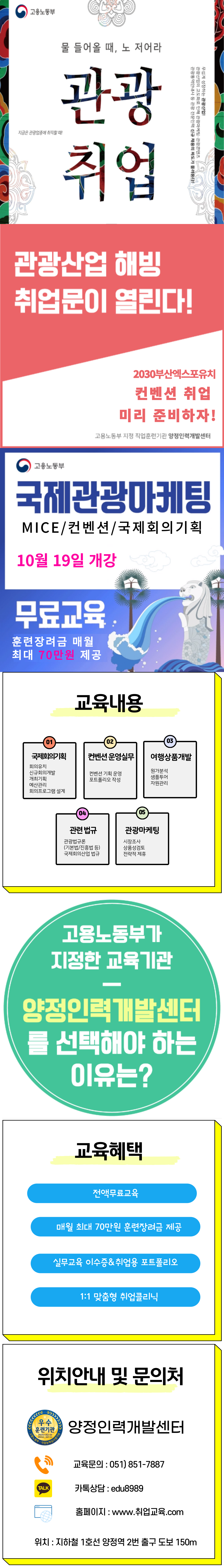 부산/관광취업반 모집 ★ 관광/마이스/컨벤션/전시업체 등 전액국비무료 취업교육생 모집