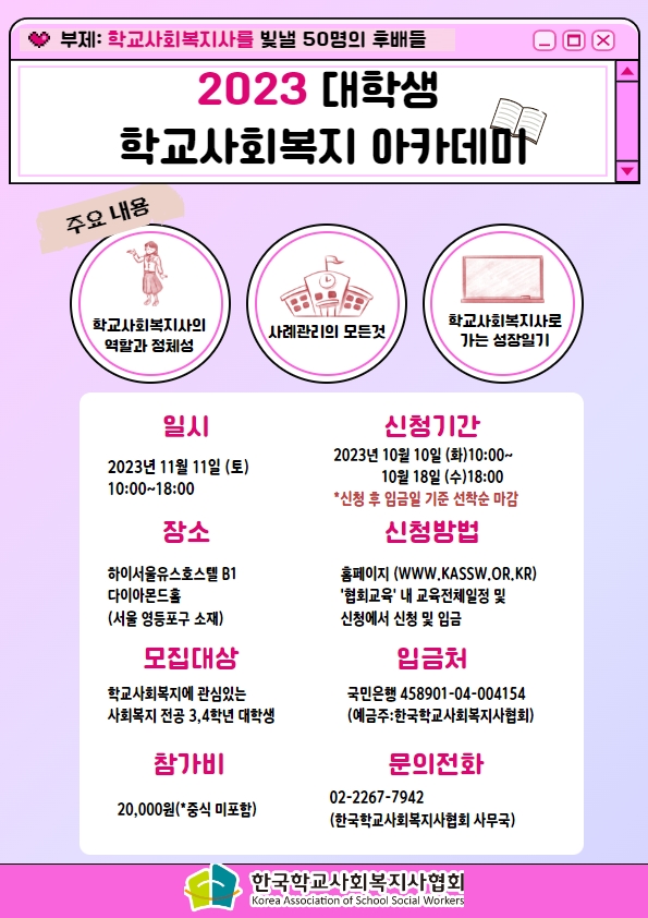 ⭐2023 대학생 학교사회복지 아카데미⭐