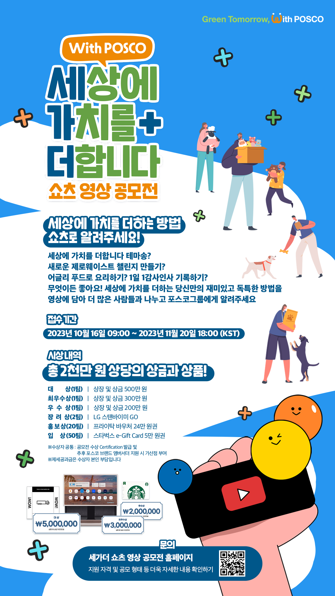- 유튜브 업로드 후 공모전 공식 홈페이지(www.posco-brand.com )에서 최종 응모