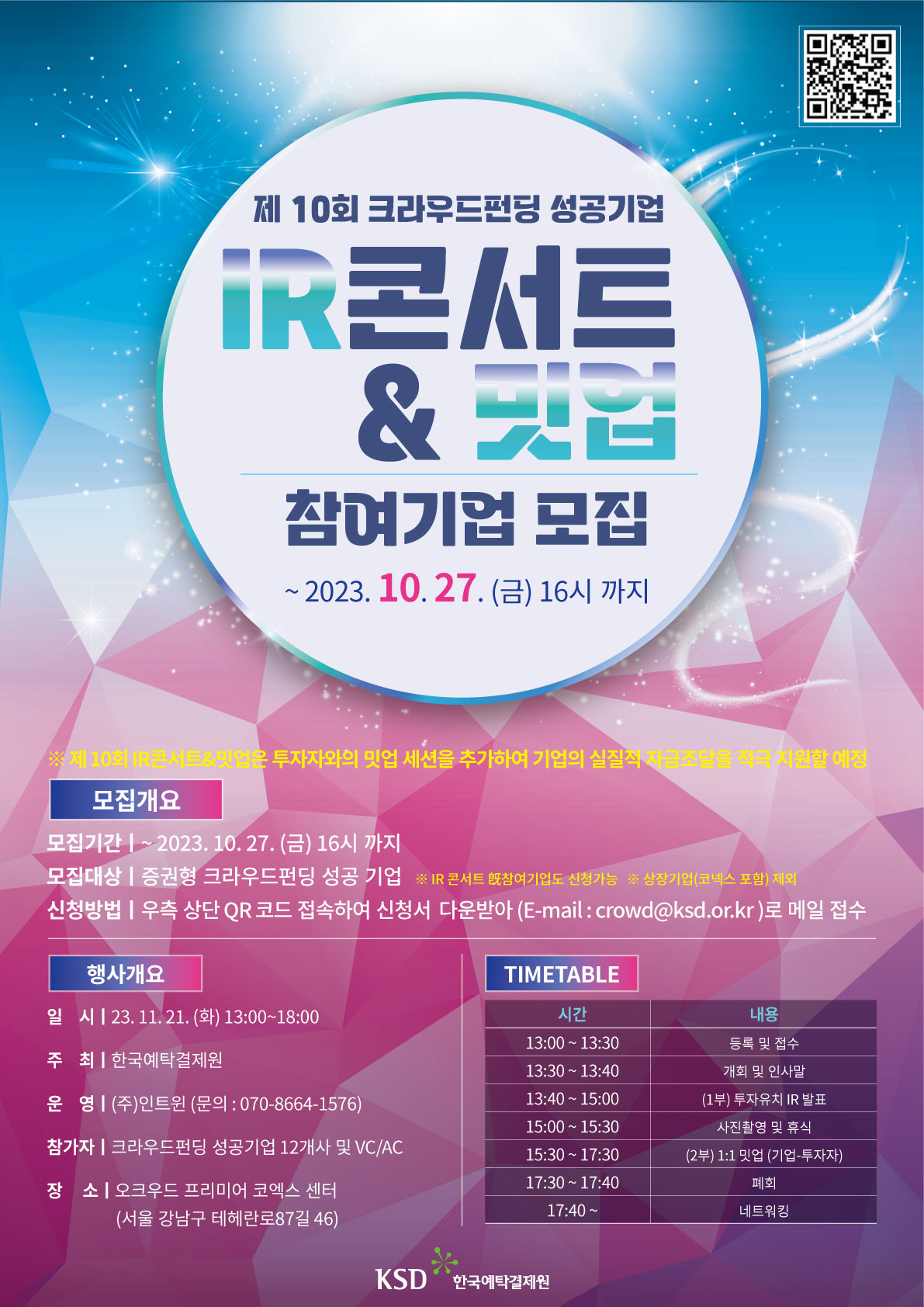 ■ 접수방법 : 신청서 작성 후 이메일 제출 (crowd@ksd.or.kr)
