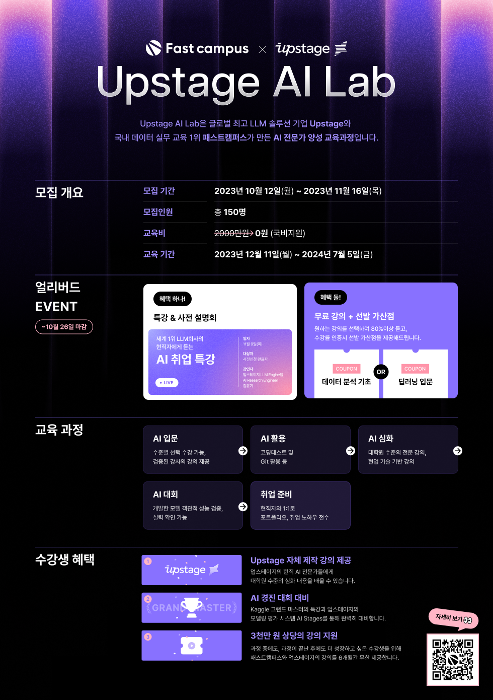 망설이는 분들을 위한 사전설명회와 AI 취업 특강이 11월 9일(목)에 진행됩니다!