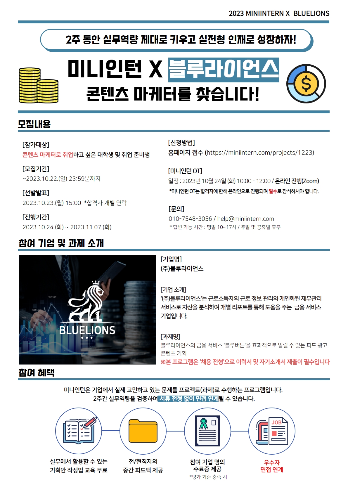 - 미니인턴 신청 : https://bit.ly/46vHO7h
