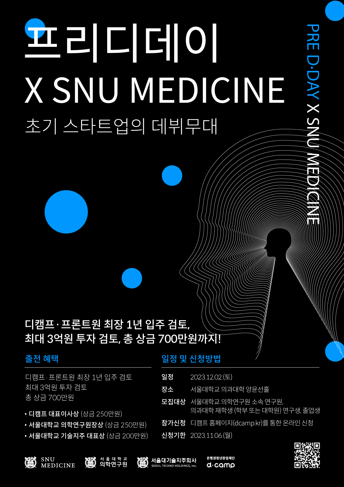 모집 마감일 기준 팀원 중 1인 이상 서울대학교 의학연구원 소속 연구원, 의과대학 재휴학생(학부,대학원) 연구생, 졸업생인 초기 단계 프로젝트 팀