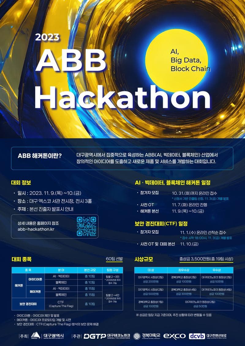 ABB 해커톤은 대구광역시에서 집중 육성하는 ABB(AI, 빅데이터, 블록체인) 산업에서