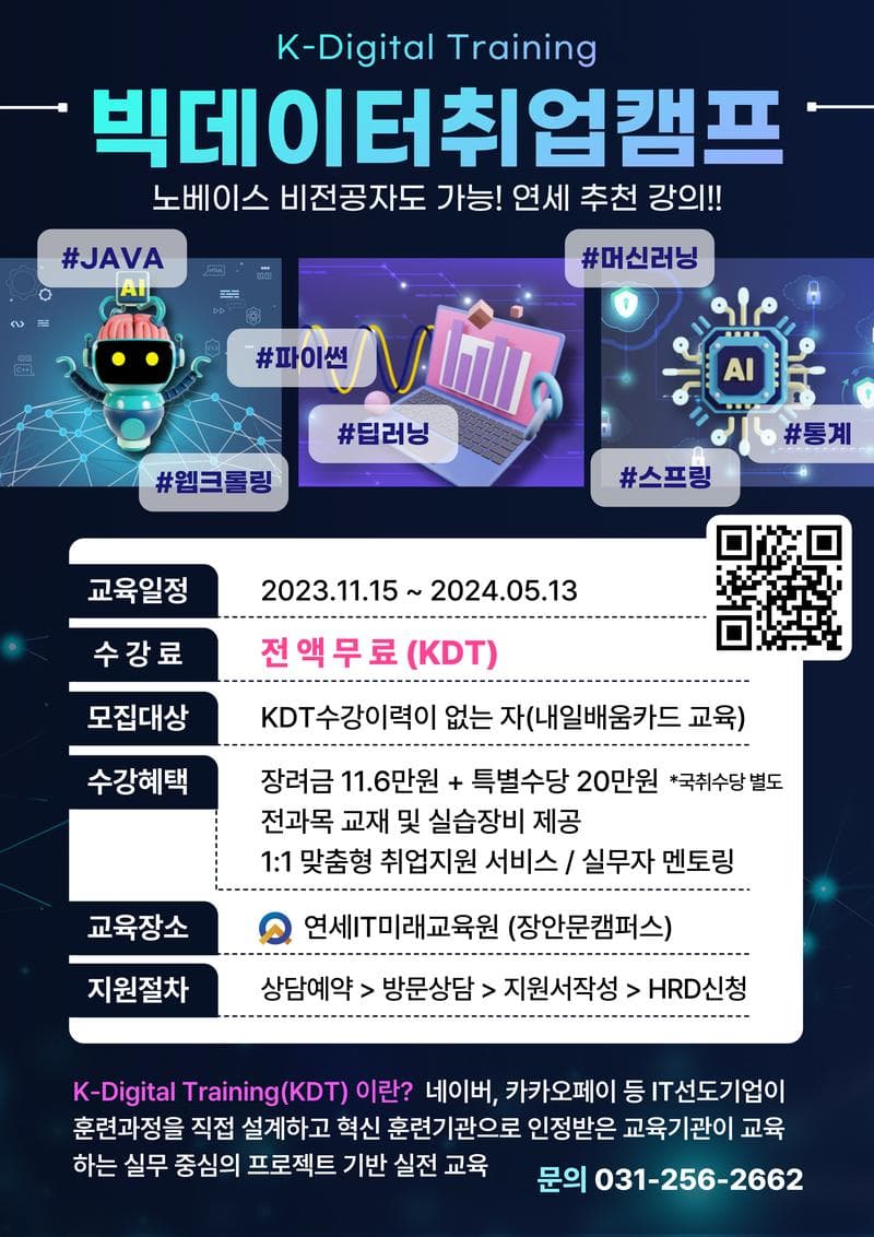 #자바 #파이썬 #딥러닝 #R프로그래밍 #개발자부트캠프 #웹개발취업캠프 #AI부트캠프 #국비지원 #코딩부트캠프 #국비지원컴퓨터학원 #코딩국비지원 #소프트웨어 #IT국비지원 #프로그래밍 #IT학원 #취업정보 #내일배움카드 #인공지능 #SQL #데이터베이스 #GPT #머신러닝 #AI학원 #JAVA강의