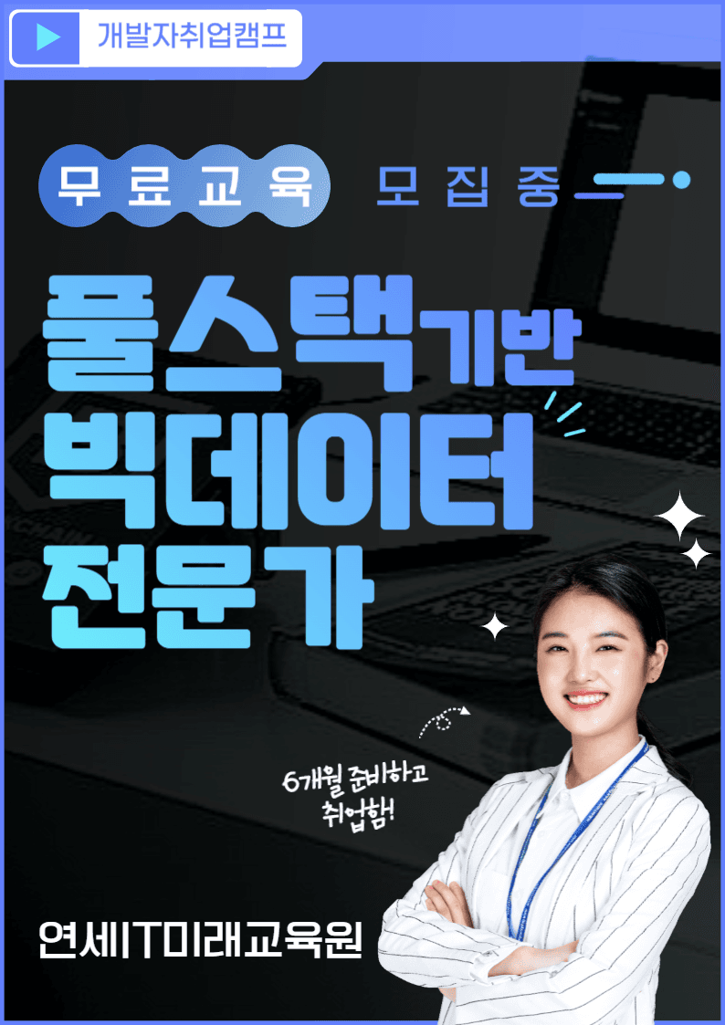 #JAVA #파이썬 #웹개발 #개발자부트캠프 #AI취업캠프 #스프링프레임워크 #JSP #SQL #웹코딩 #HTML #CSS #자바스크립트 #R #웹크롤링 #공공데이터 #데이터분석 #데이터활용 #빅데이터 #빅데이터교육 #데이터사이언스 #데이터엔지니어 #데이터국비지원 #빅데이터학원 #프로그래밍학원 #프로그래밍강의 #프로그래밍기초 #프로그래밍교육 #프로그래밍 #개발자취업 #풀스택개발자 #백엔드개발자 #풀스택 #자바웹개발