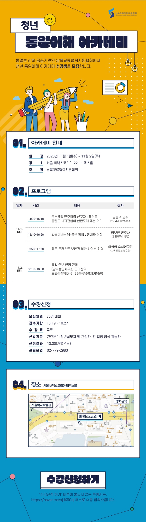 청년 통일이해 아카데미를 개최하오니 여러분들의 많은 관심과 참여 부탁드립니다.