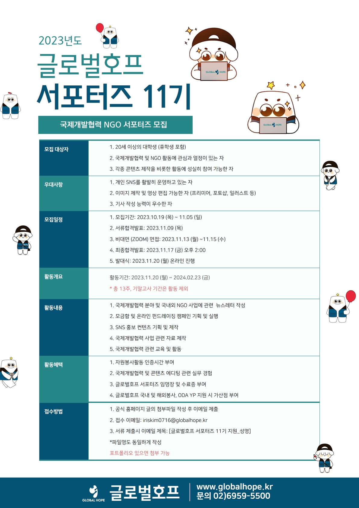 서류 제출 시 이메일 제목: [글로벌호프 서포터즈 11기 지원_성명]