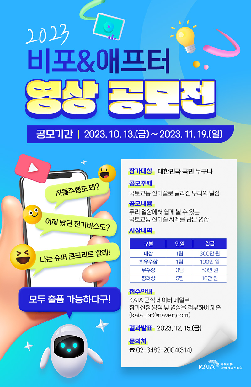 [국토교통과학기술진흥원] 2023 비포&애프터 영상 공모전 (~11/19)