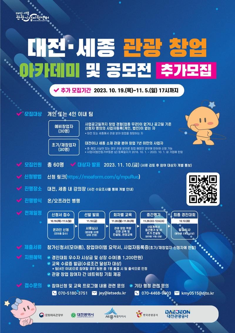대전·세종 관광 창업 아카데미 및 공모전 "참여자 추가 모집"을 진행합니다!