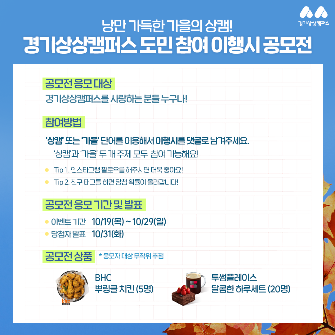 #경기상상캠퍼스 #이행시 #이벤트 #상캠 #가을날씨 #단풍 #가을맞이 #구황작물 #도민참여 #경기도 #도민