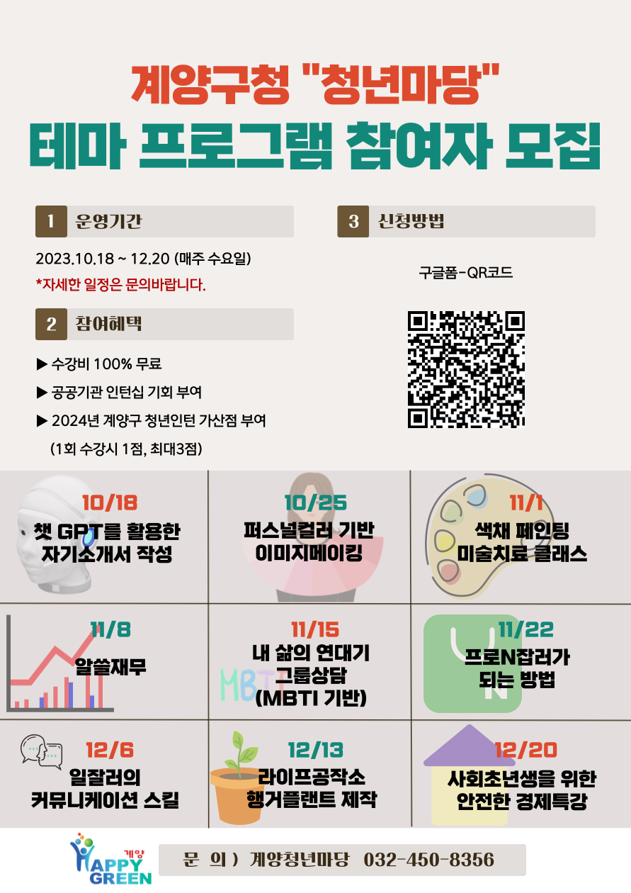 매주 수요일 10월부터 12월까지 계양구청에서 청년마당 테마프로그램을 진행합니다.