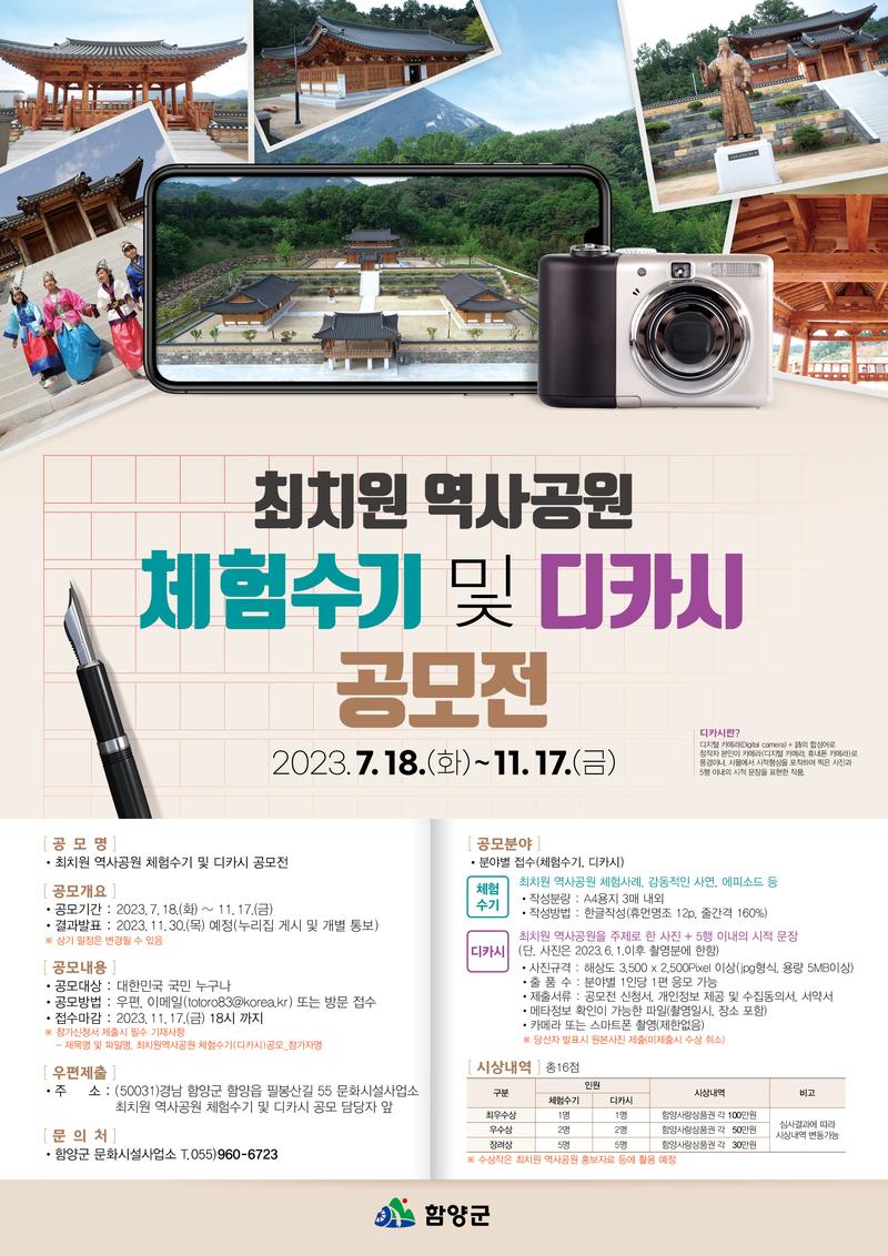 공모명 : 최치원 역사공원 체험수기 및 디카시 공모전