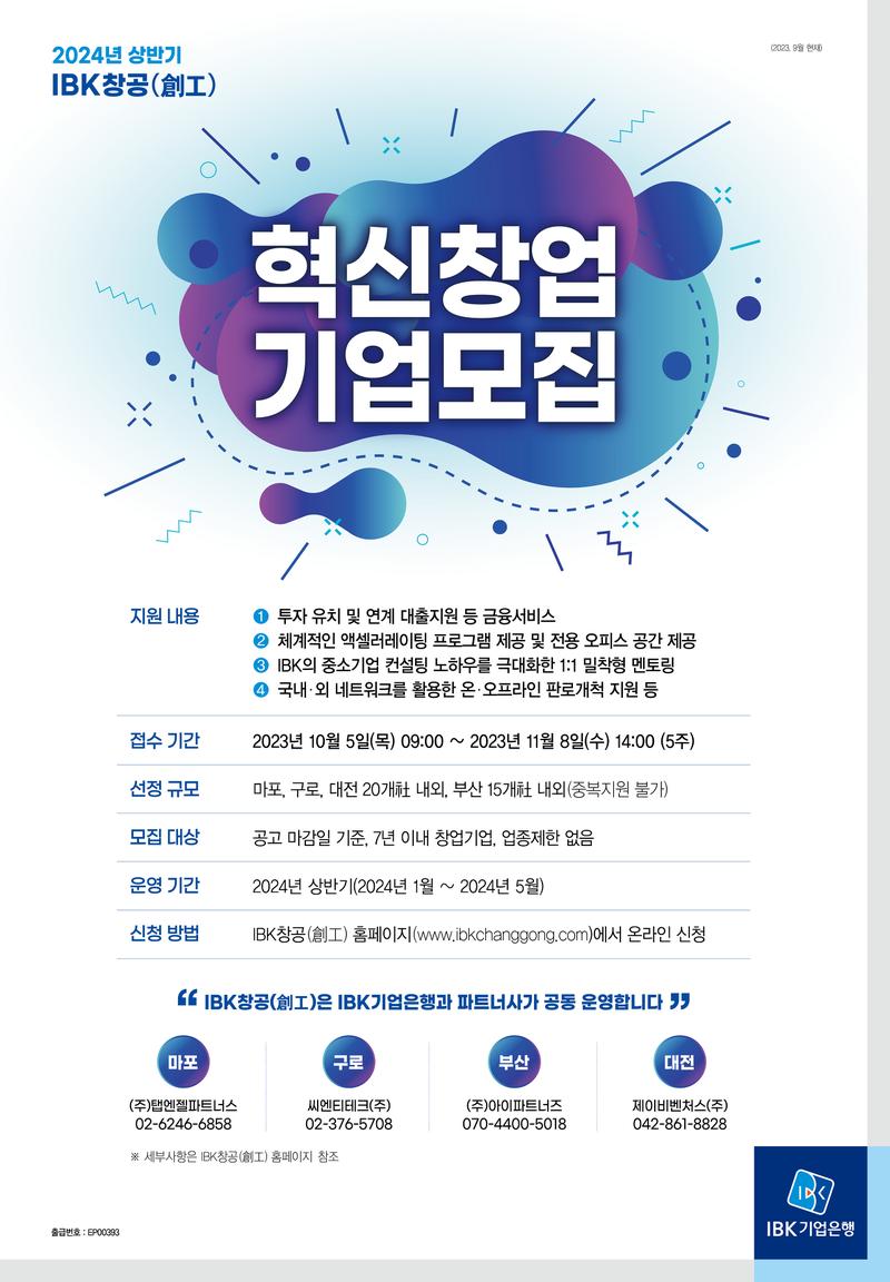 IBK기업은행과 함께 '세상을 바꿀' 「IBK창공(創工)」 2024년 상반기 혁신 창업기업을 모집합니다.