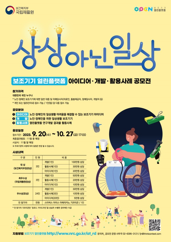 보조기기 열린플랫폼 아이디어·개발·활용사례 공모전 (접수연장:~10/27)