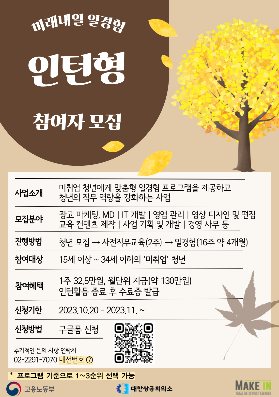 📣2023년도 미래내일 일경험사업 “2기” 인턴형 참여청년 모집!!📣