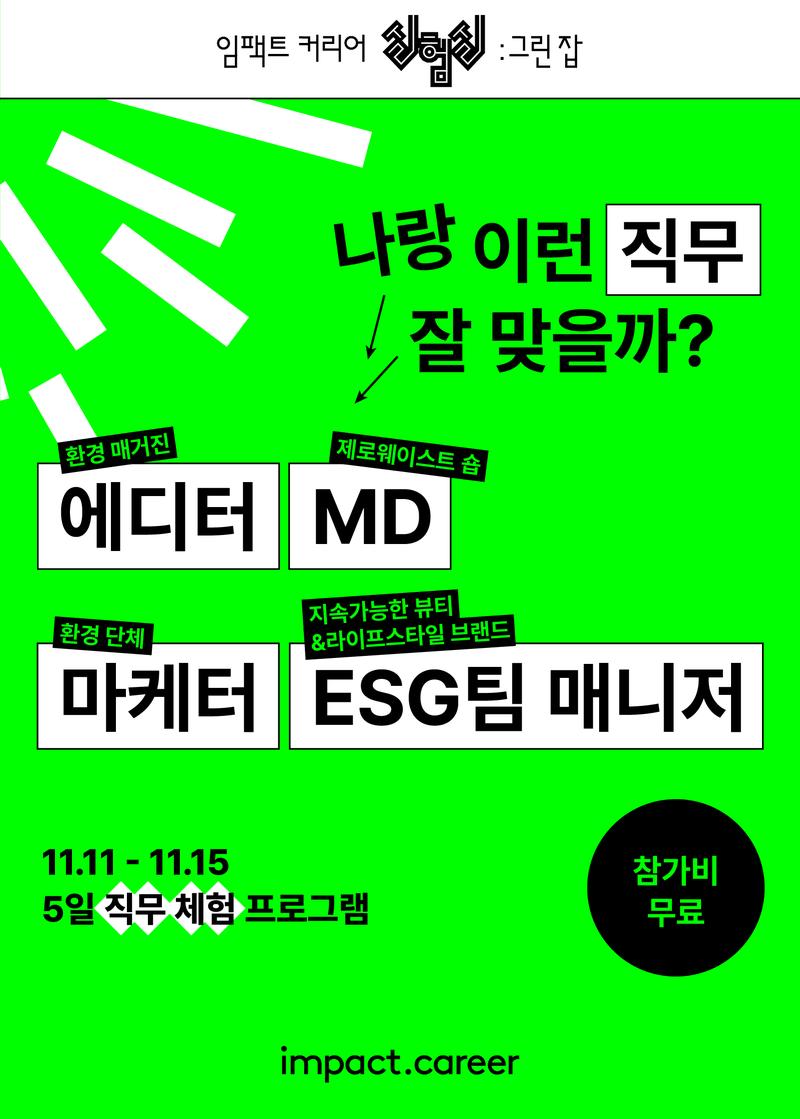 ✨ 나와 ‘그린잡’의 케미를 연구해보는 ‘임팩트 커리어 실험실’의 참가자를 모집합니다 ✨