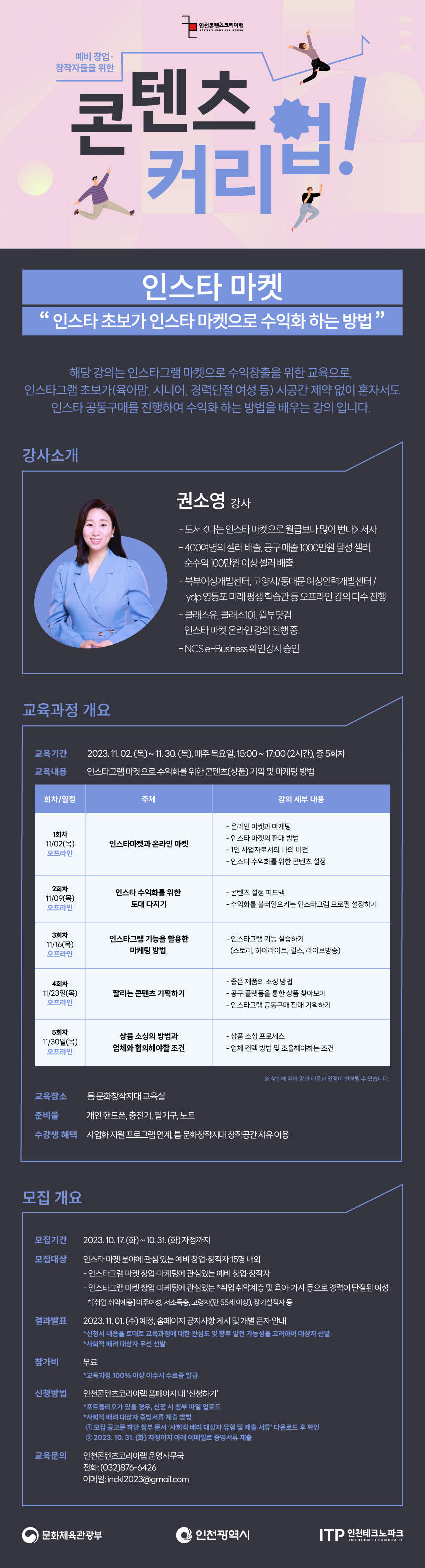 ▶ 교육문의: 인천콘텐츠코리아랩 운영사무국 032-876-6426 / inckl2023@gmail.com