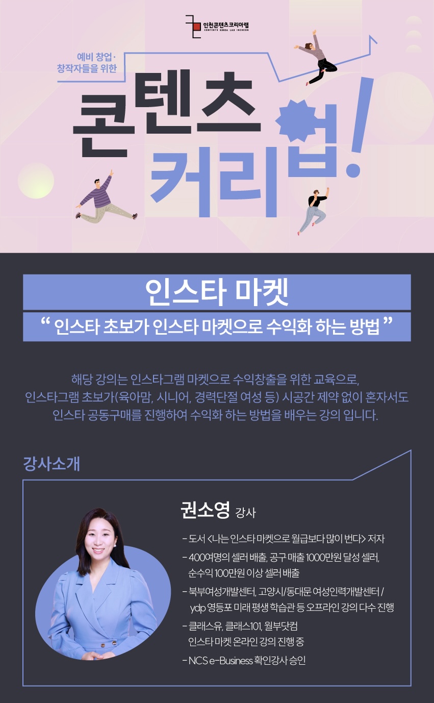 - 인스타그램 마켓 창업·마케팅에 관심있는 *취업 취약계층 및 육아·가사 등으로 경력이 단절된 여성