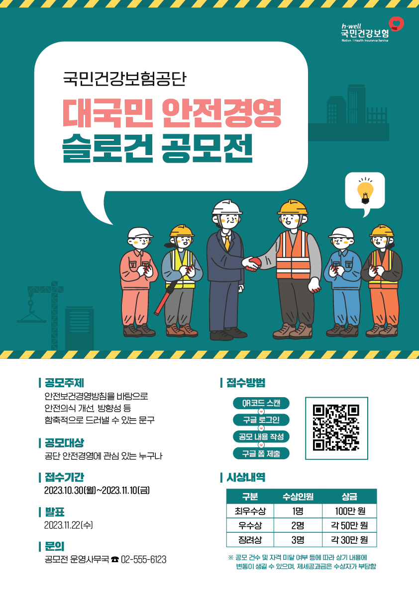 국민건강보험공단에서 안전문화 확산을 선도할 대국민 안전경영 슬로건 공모전을 시행합니다!