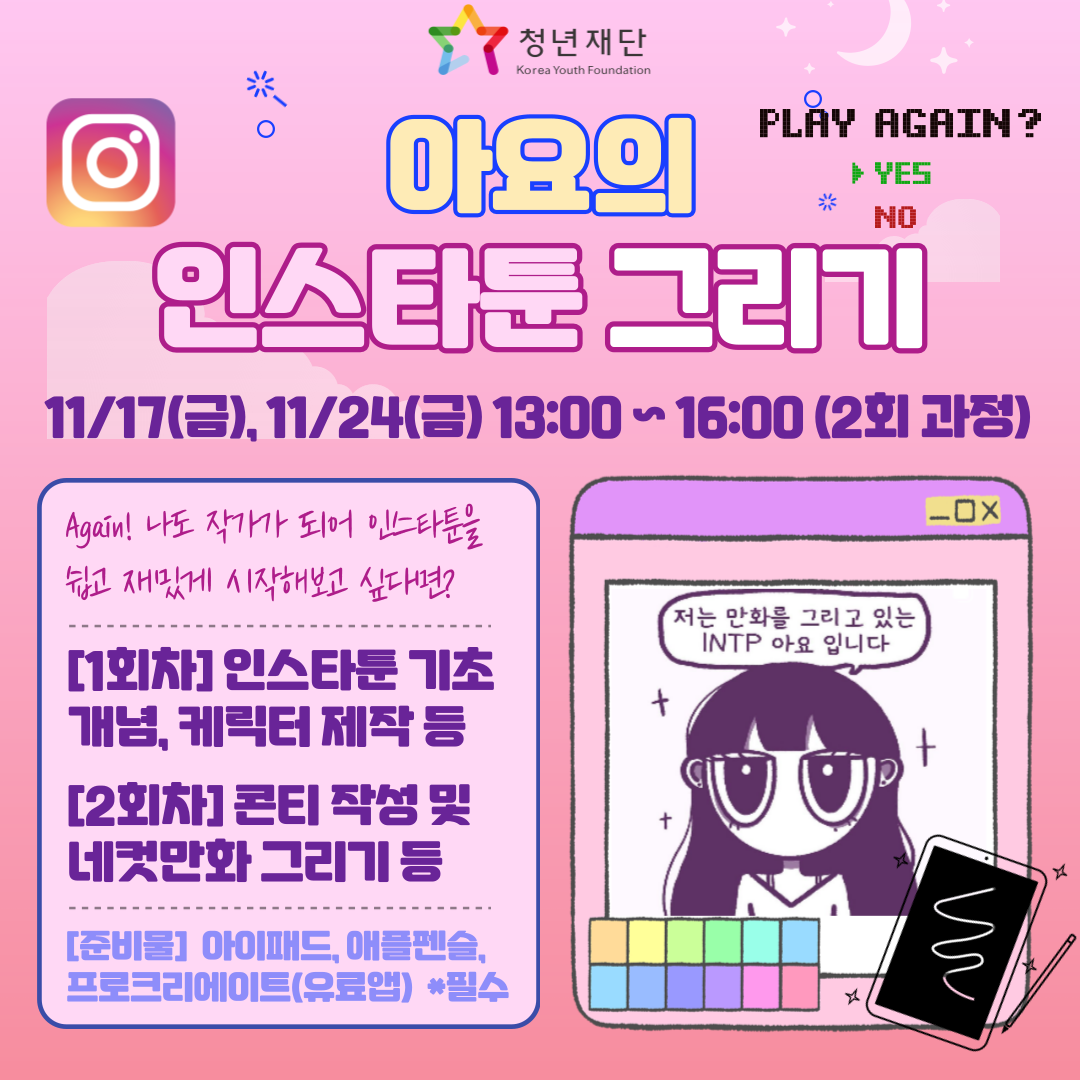 '아요의 아이패드로 인스타툰 그리기'를 신청해보세요:)