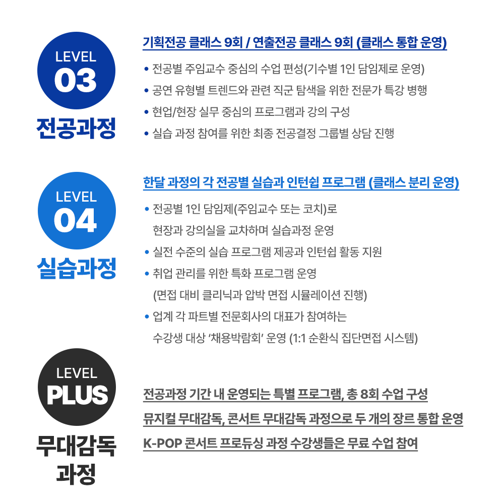 ▪ 지원자격: 전공불문/고졸이상/공연현장 취업 희망자와 공연현장 실무자