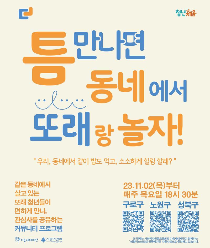 ☀️청년 커뮤니티 동네 모임 '틈만나면' 우리, 틈만나면 동네에서 또래랑 놀자!😊