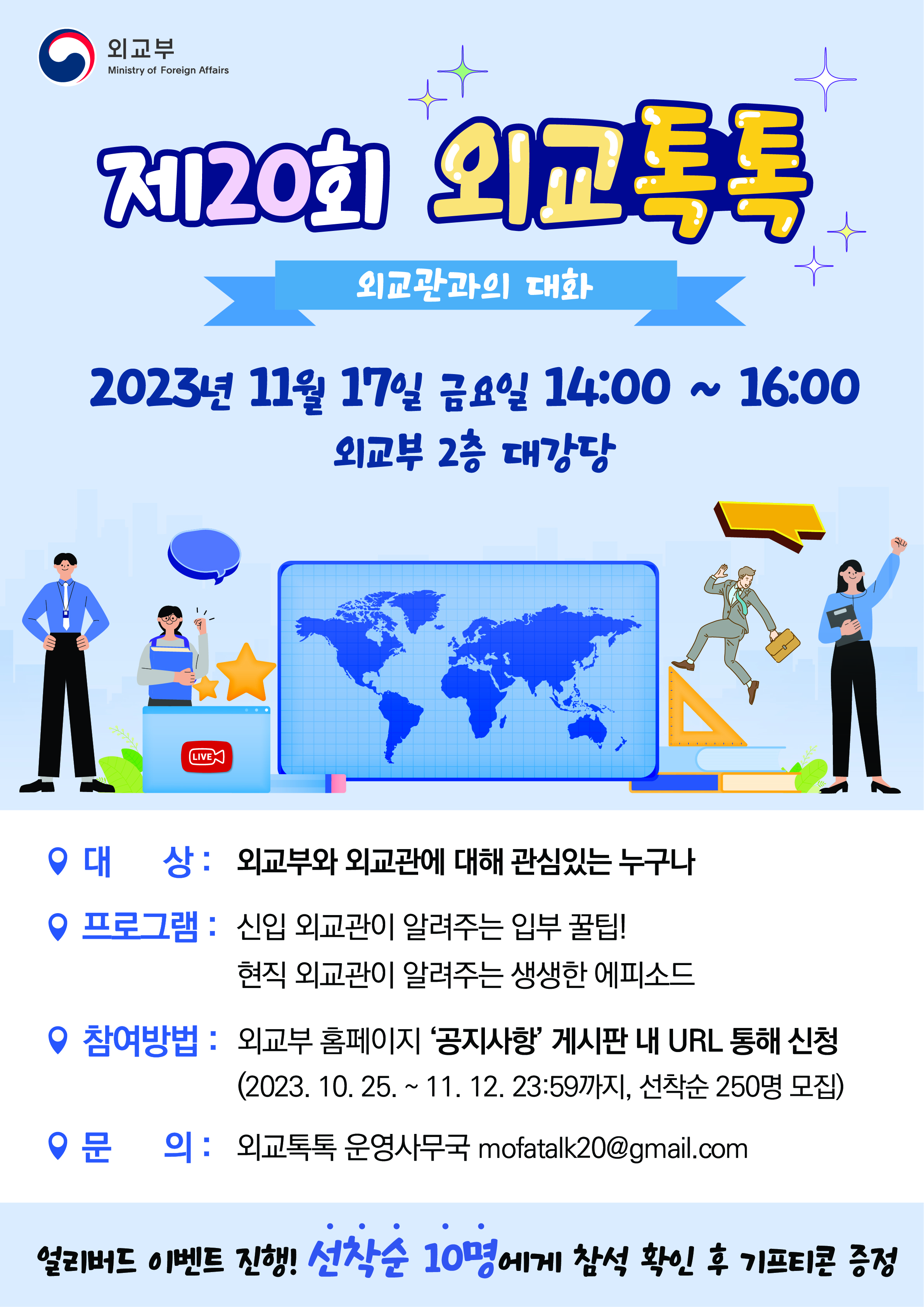 문의사항이 있으신 분들께서는 외교톡톡 운영사무국으로 연락주세요.