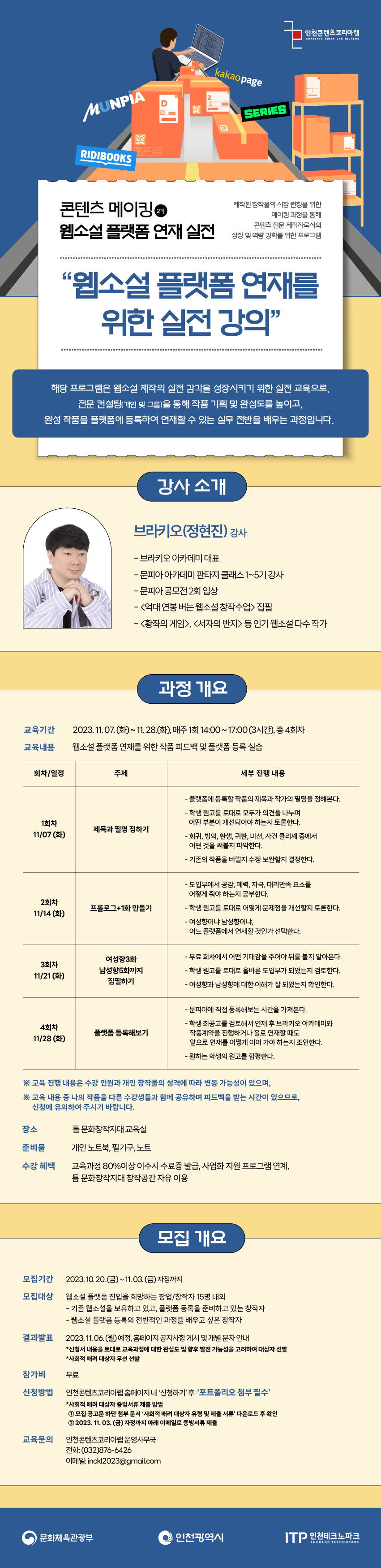 ▶ 교육문의: 인천콘텐츠코리아랩 운영사무국 032-876-6426 / 010-9094-5670 inckl2023@gmail.com