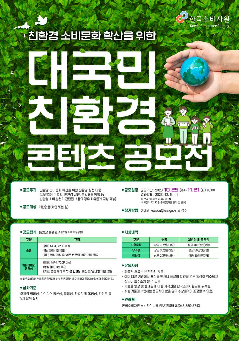 - 대국민 대상 콘텐츠 공모를 통해 친환경 소비에 대한