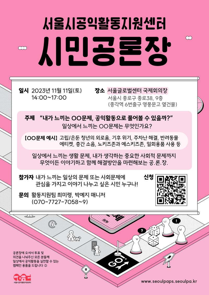 공익활동을 통해 해결방안을 마련해보는 시민참여공론장을 개최합니다.