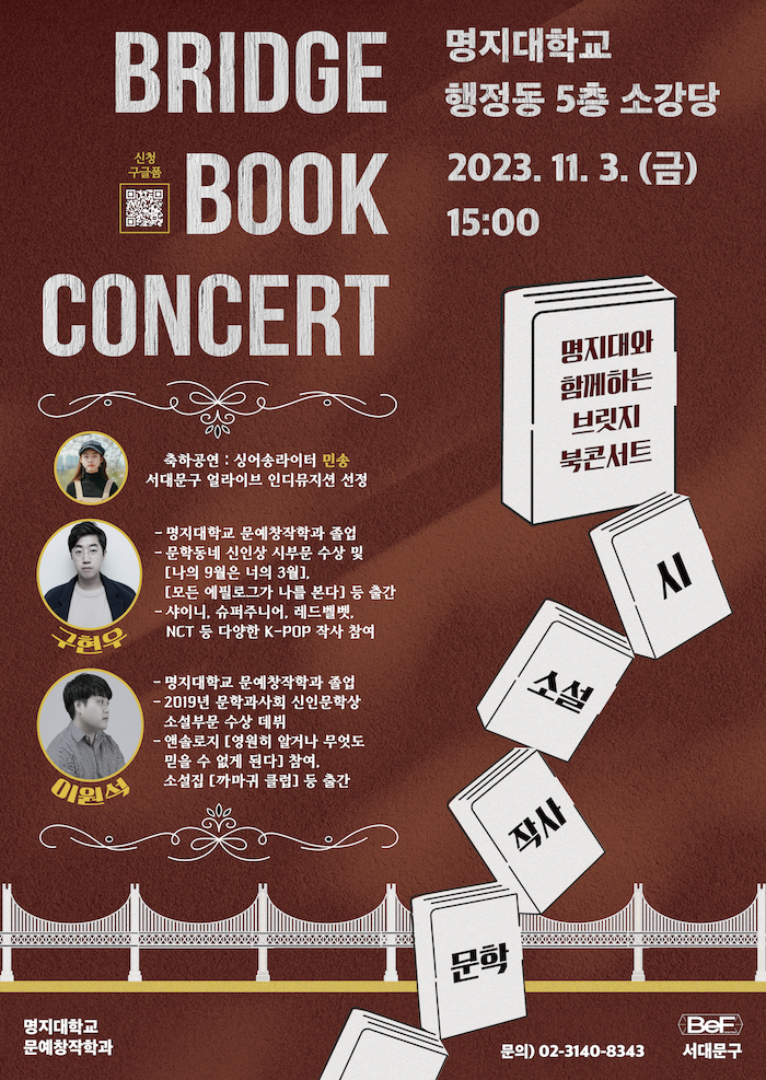 📕 서대문구 독립출판 창작자 양성과정 특별 프로그램 : 명지대학교와 함께하는 <브릿지 북콘서트>참가자를 모집합니다!📝