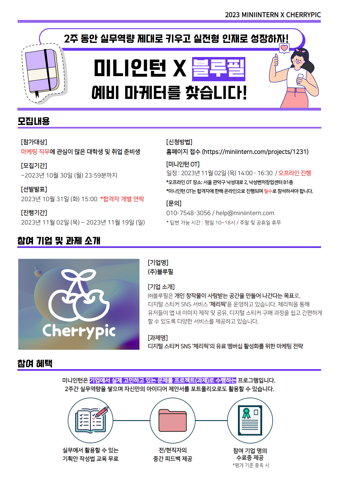 지금 바로 [미니인턴X체리픽] 신청하세요!