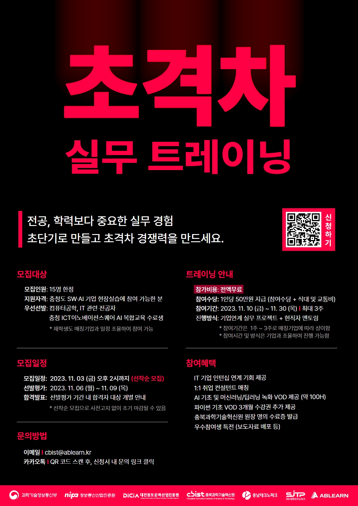 모집일정: 2023. 11. 03 (금) 오후 2시까지 (선착순 모집)