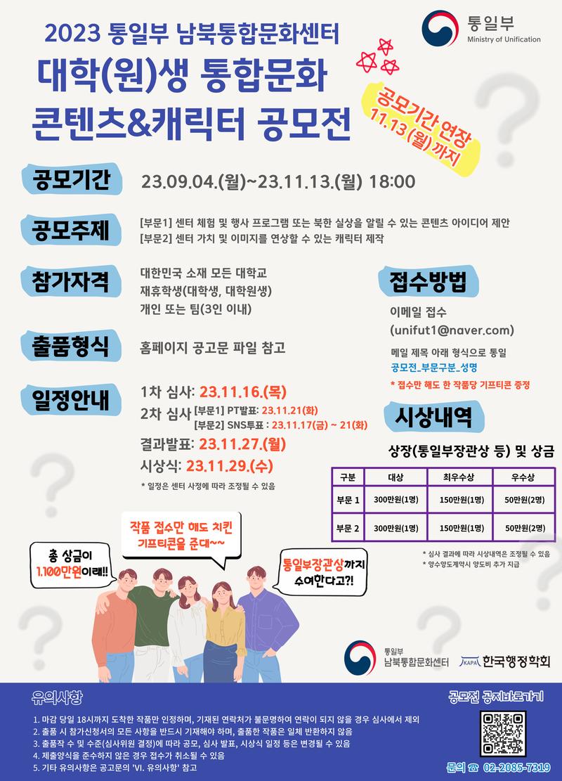 - 공고 및 접수: 23.09.04.(월) ~ 23.11.13.(월) 18:00까지