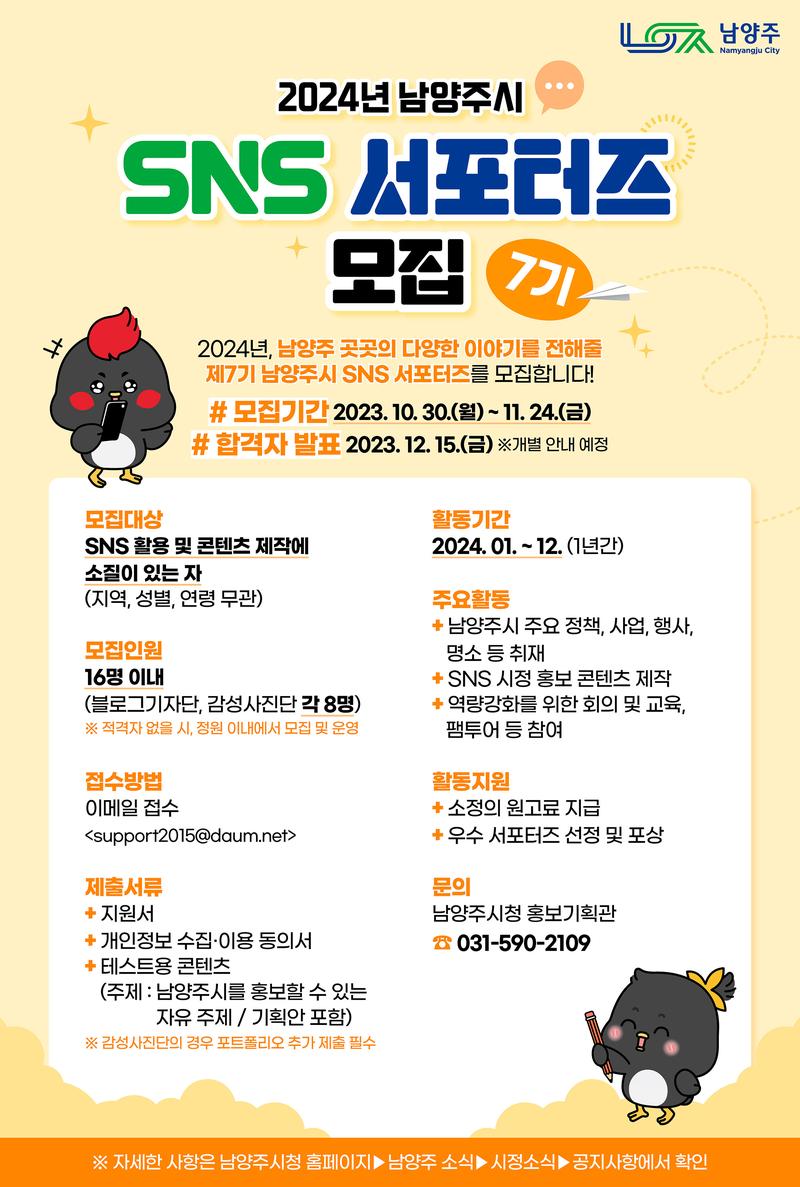 제7기 남양주시 SNS 서포터즈를 모집합니다!