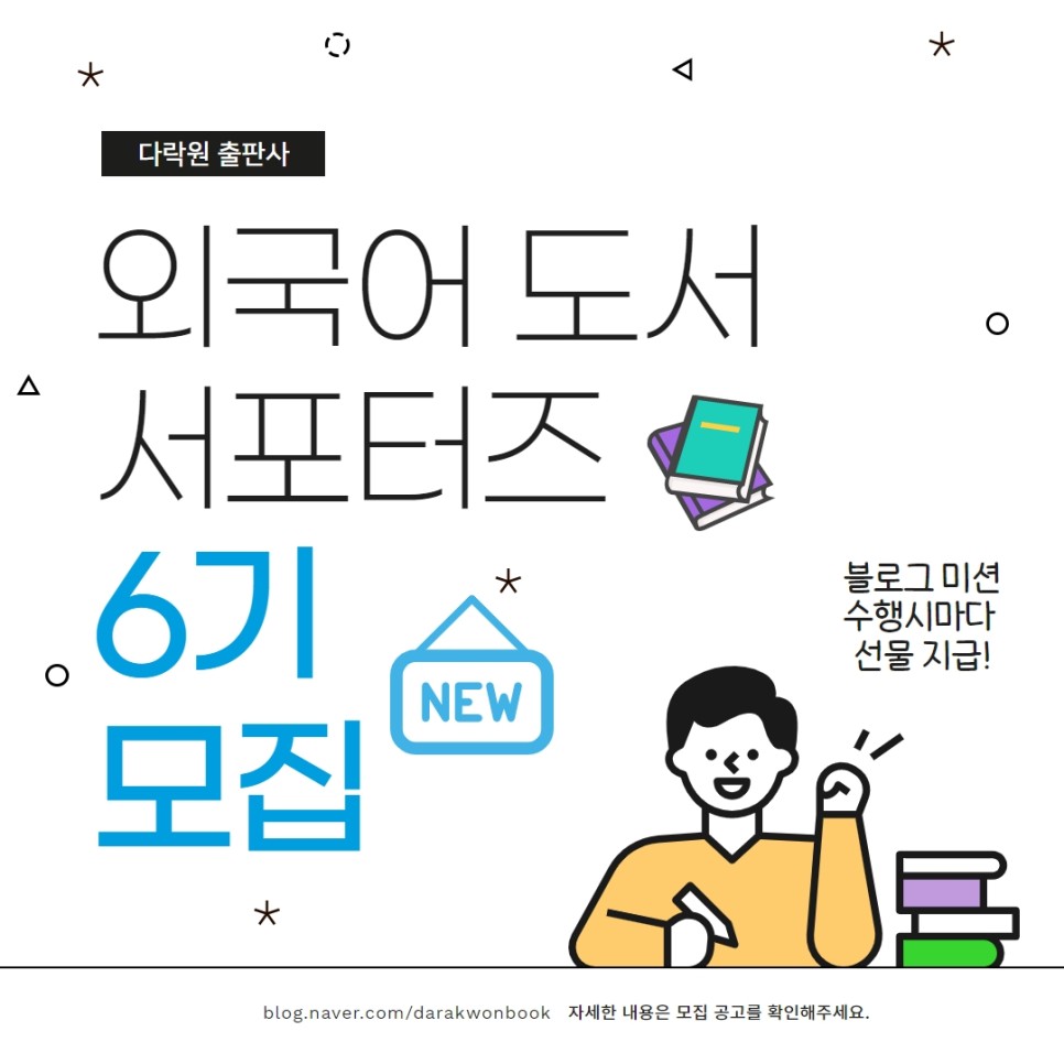 다락원 외국어 도서 서포터즈 6기를 모집합니다! 모집 내용은 동일하며 선물이 더욱 풍성해졌으니 꼭 확인해주세요!