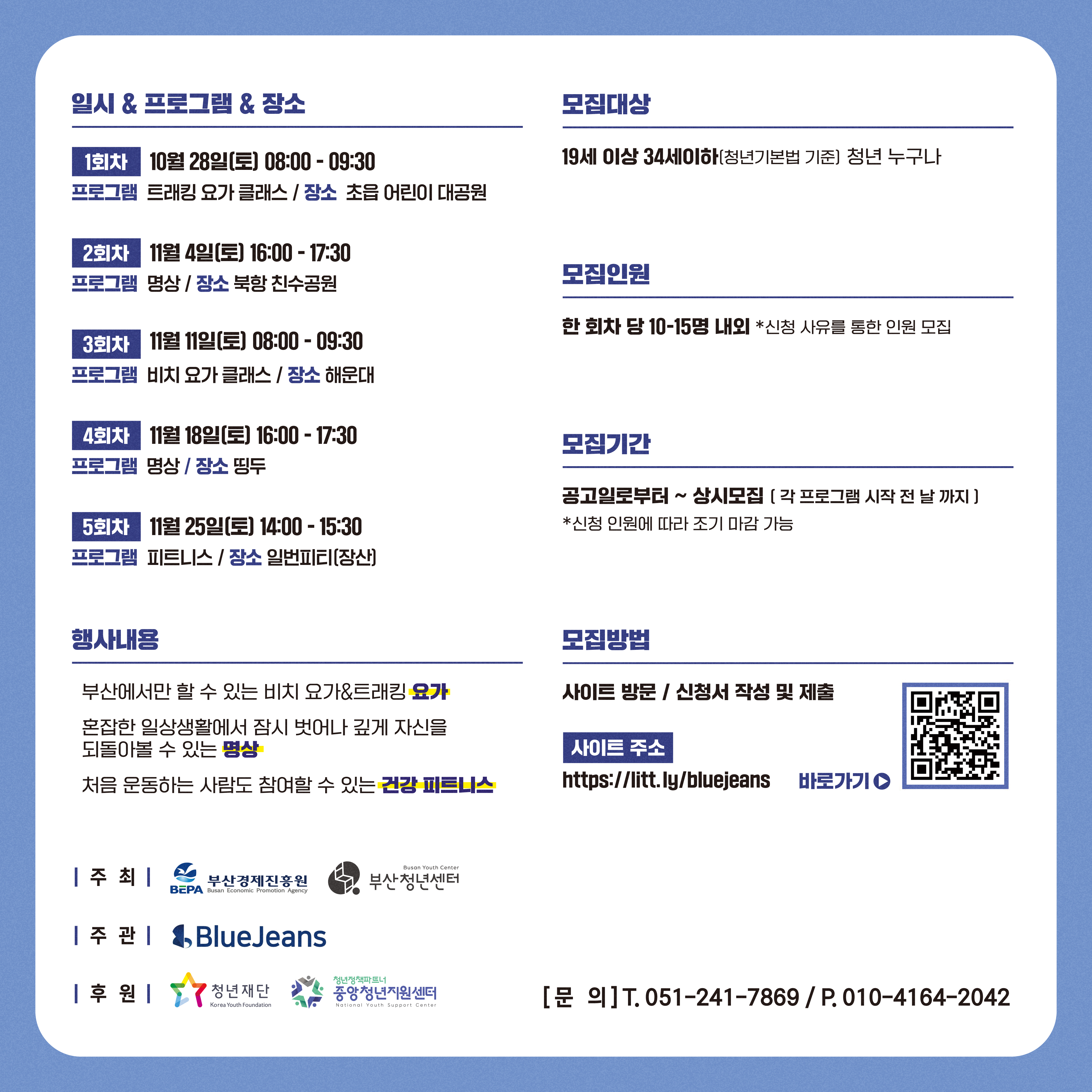 * 각 프로그램 시작 전까지 모집을 받습니다(신청 인원에 따라 조기 마감 가능)
