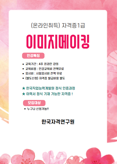 이미지메이킹1급 인강자격증 무료 및 응시료 지원 수강생 모집