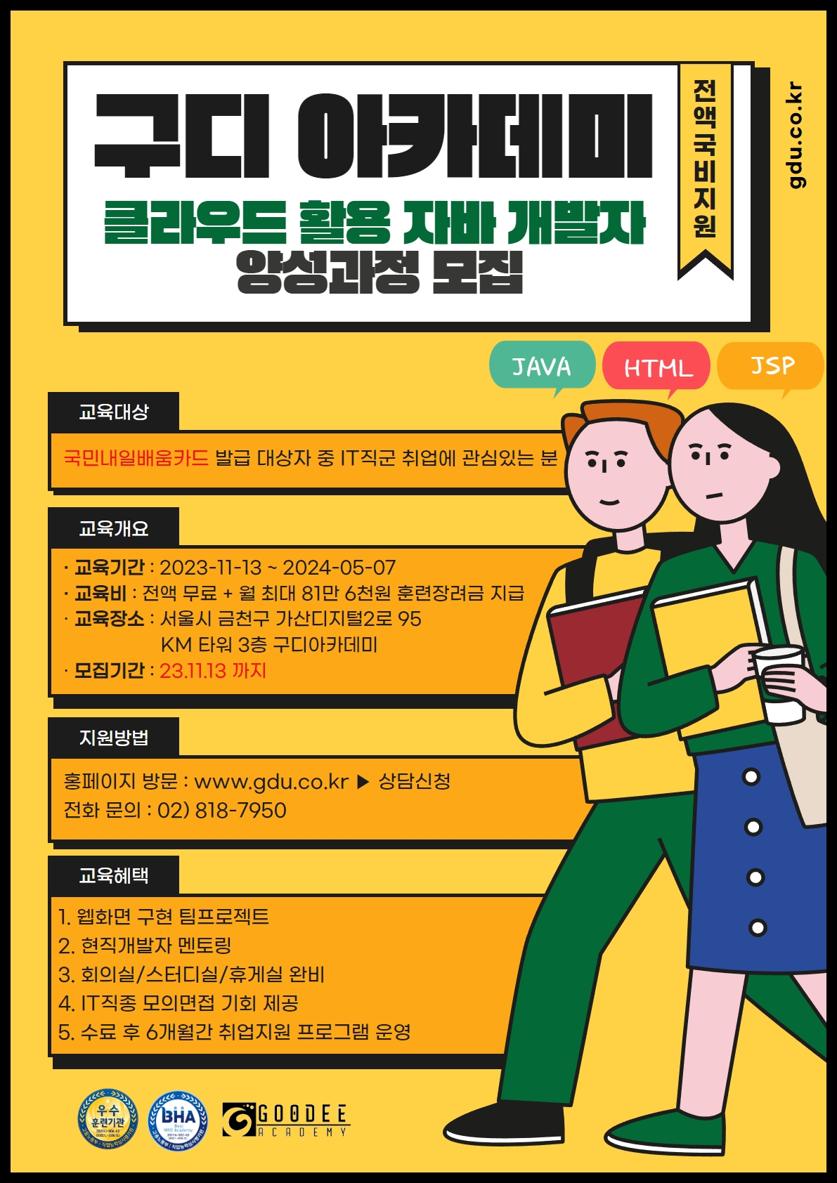 [전액 국비지원] 구디아카데미 자바/스프링 개발자 양성과정 훈련생 모집