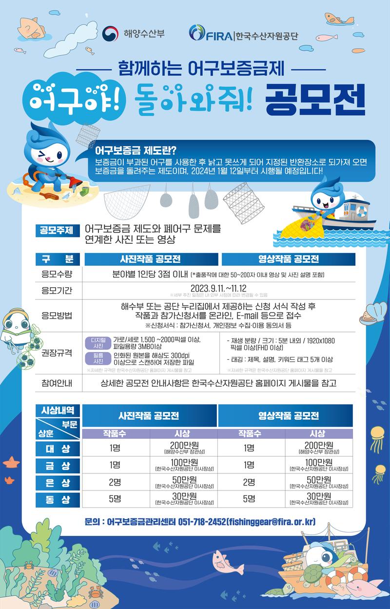 ◈ 문의: 한국수산자원공단 어구보증금관리센터(051-718-2452, jch@fira.or.kr)