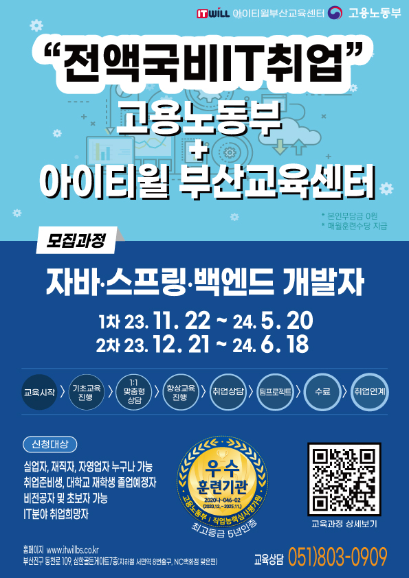 - 11월 개강 : 프로젝트 기반 자바 스프링 풀스택 개발자