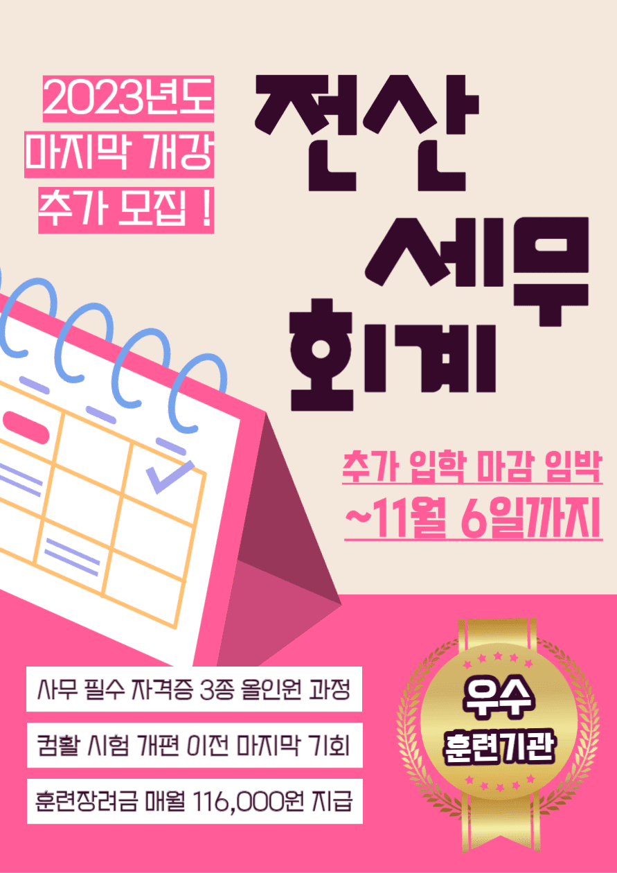 교육내용 : 전산회계1급, 전산세무2급, 컴퓨터활용능력 2급 실기 까~쥐