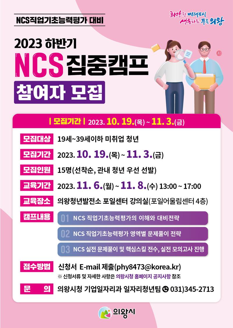 [의왕시] 공공기관 취업을 위한 필기 시험 완벽대비 'NCS 집중캠프(대면)' (~ 11. 3. (금) 선착순 모집, 참가비 무료)