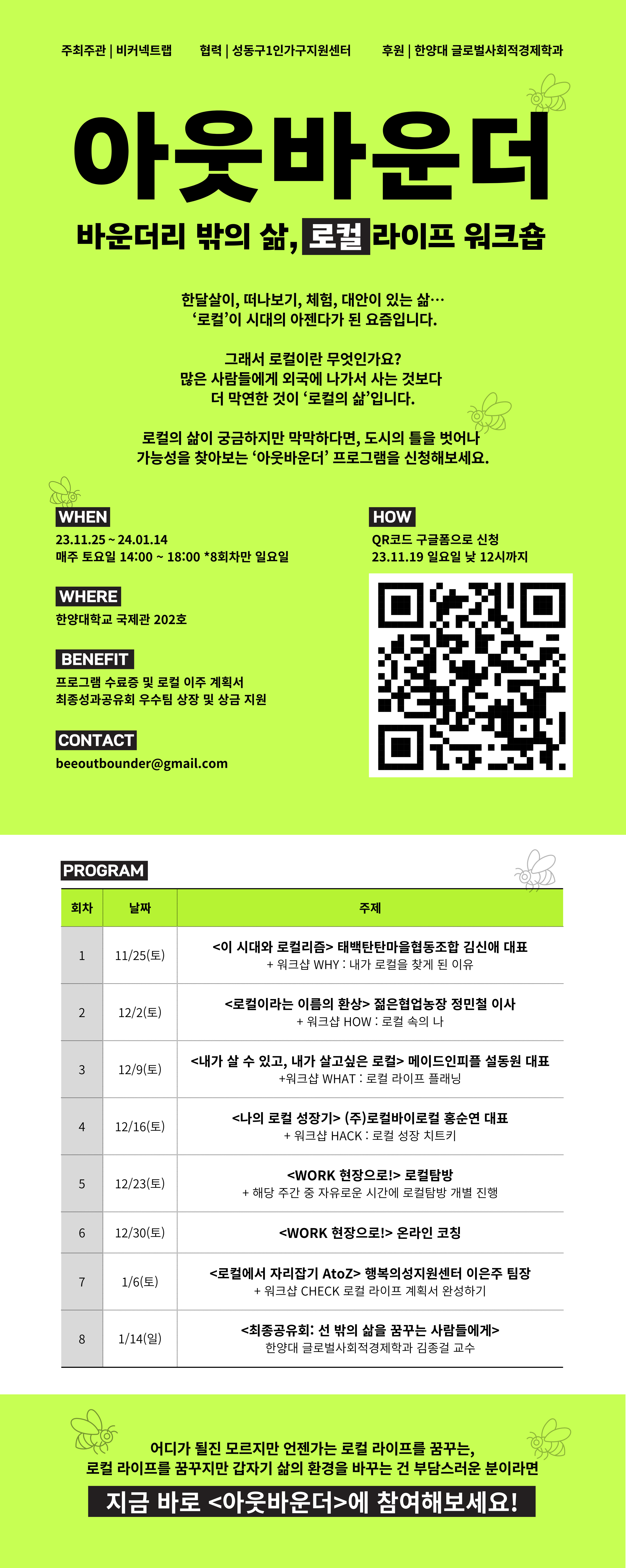 - 워크숍 : 8주차 과정의 워크샵에 전부 참여하면 로컬의 삶을 상상하고