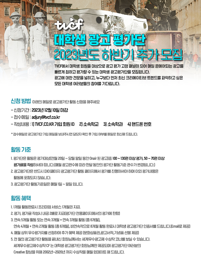 2023년 하반기 TVCF 대학생 광고평가단 모집