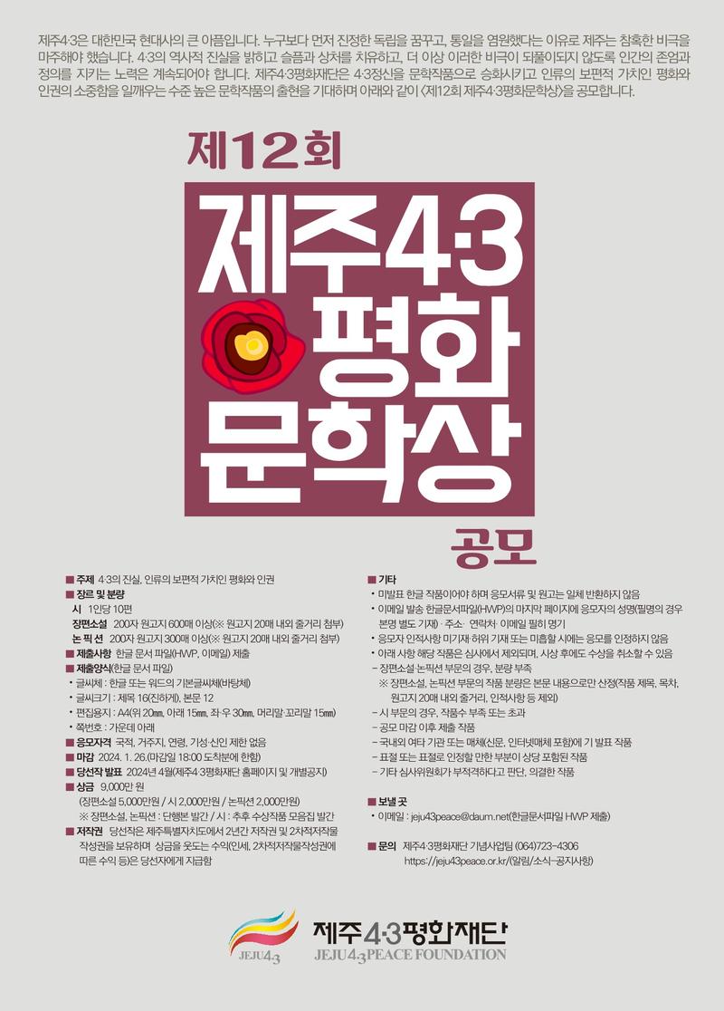 [당선작 발표] : 2024년 4월(제주4·3평화재단 홈페이지 및 개별공지)