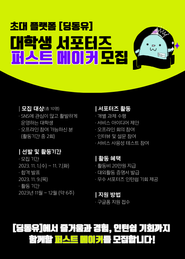 초대 플랫폼 [딩동유] 대학생 서포터즈 '퍼스트 메이커' 모집
